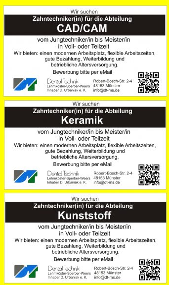 Zahntechniker/in für die Abteilungen CAD/CAM, Keramik u. Kunststoff gesucht.